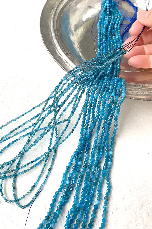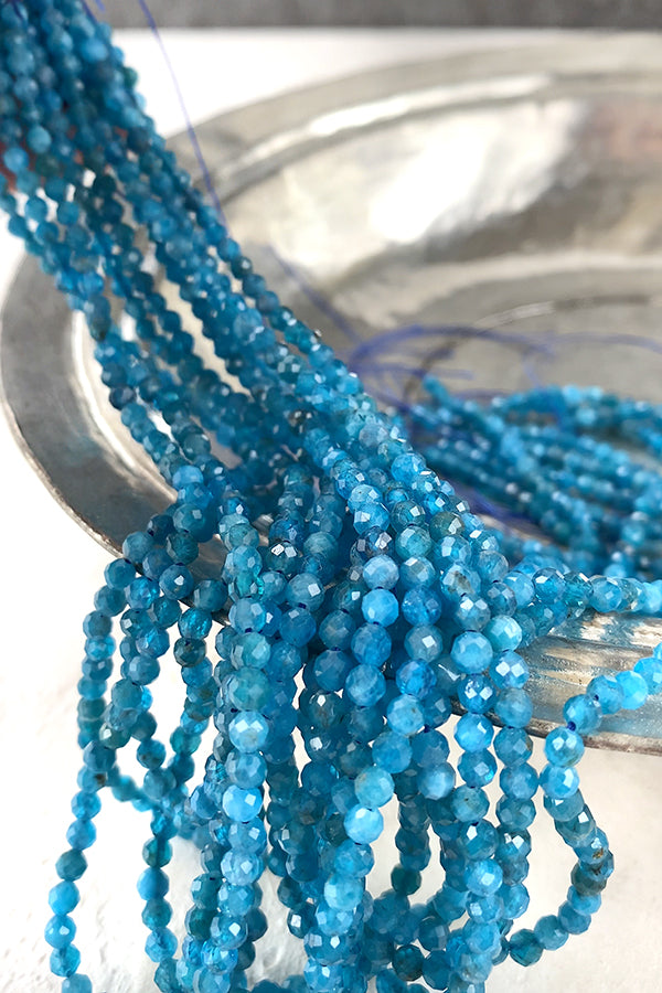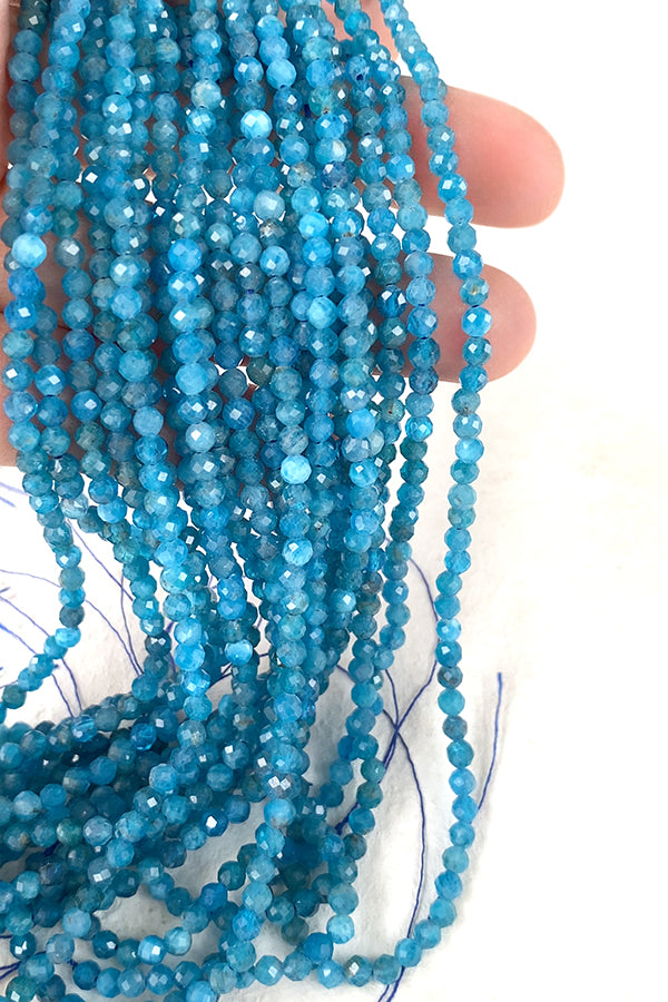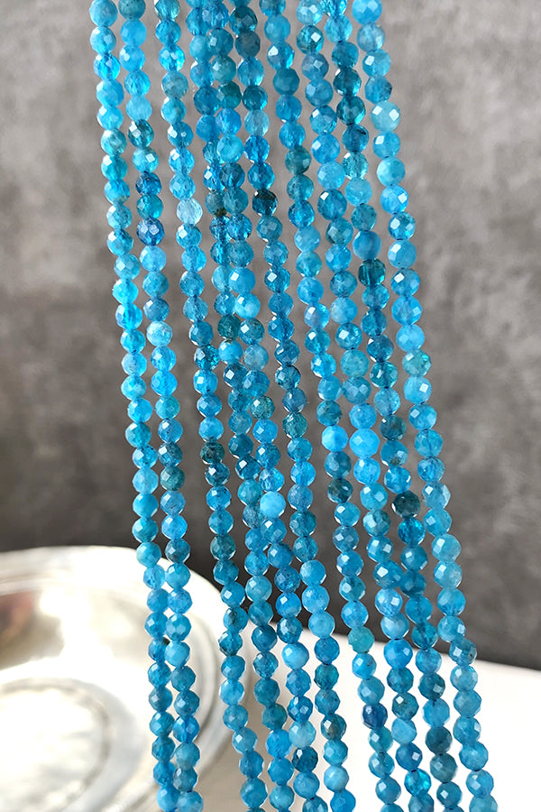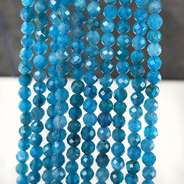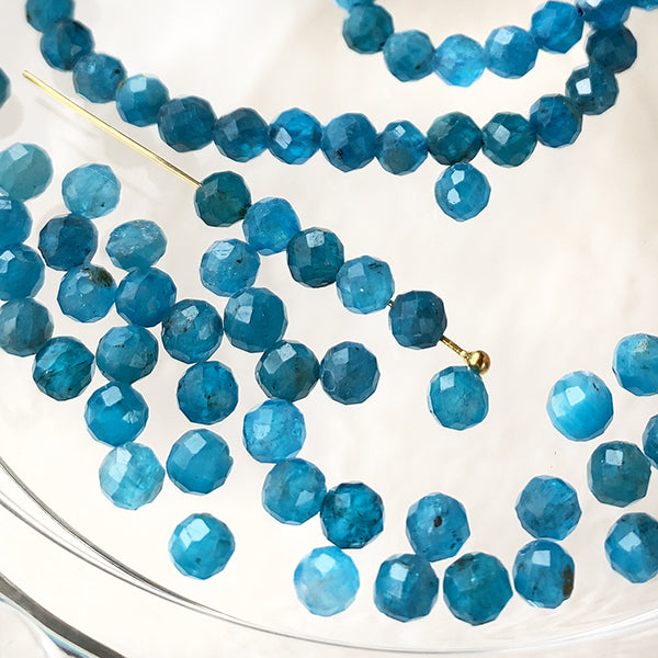 【天然石】 ブルーアパタイト ネオンブルーアパタイト (ラウンドカット) 大きさ 約3.5~3.6×3.5~3.6mm 穴径 約0.4~0.5mm