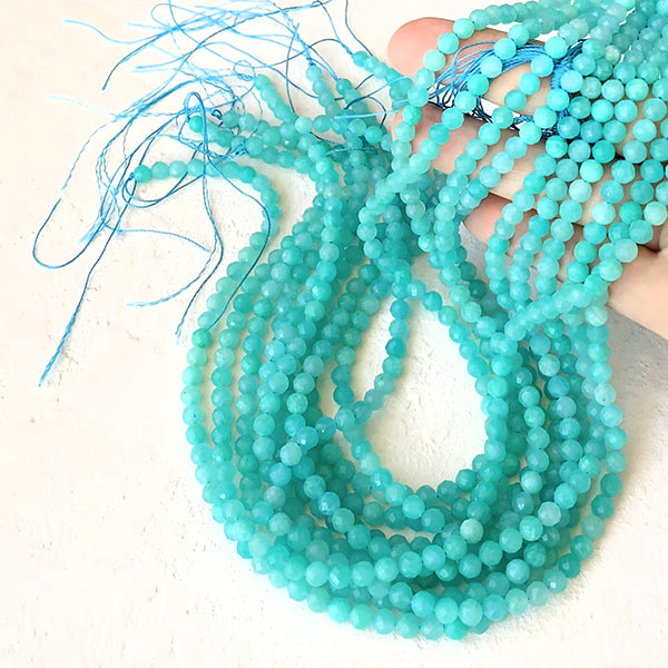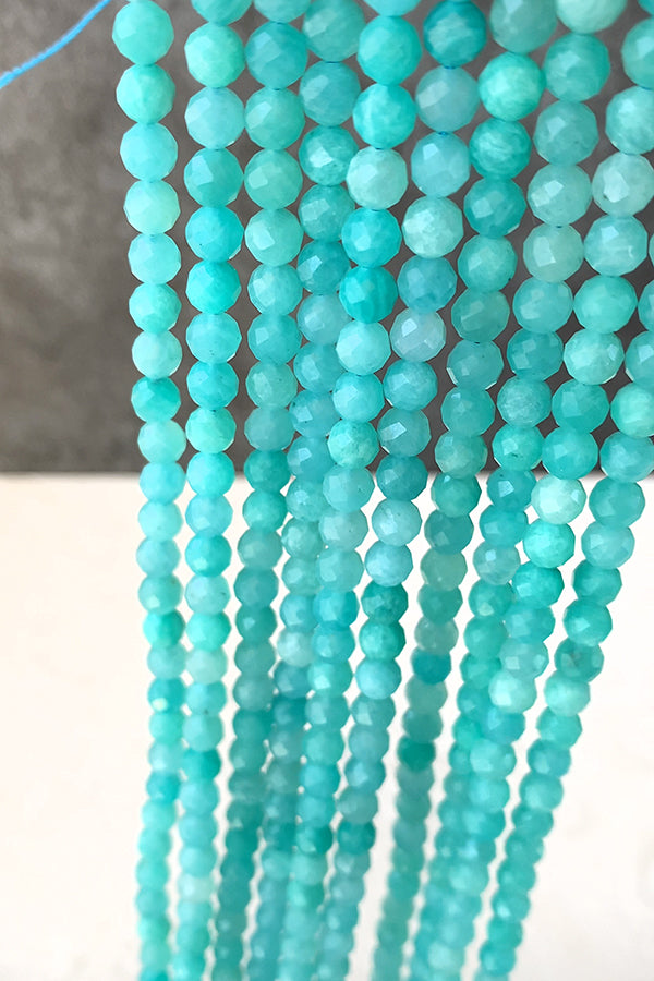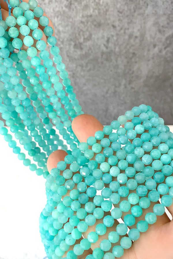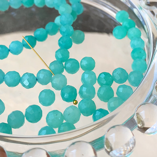 【天然石】 アマゾナイト (ラウンドカット) 大きさ 約5~5.2×5.3~5.5mm 穴径 約0.5~0.6mm