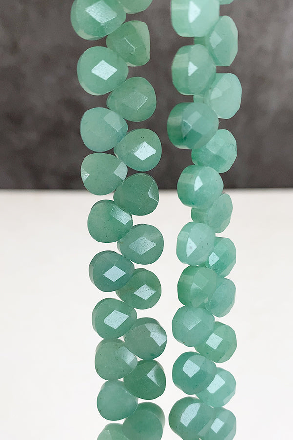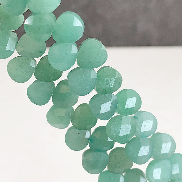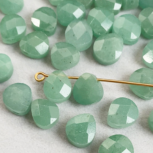 【天然石】 グリーンアベンチュリン (フラットマロンカット) 大きさ 約8.3×9.3mm 厚み 約5~5.5mm 穴径 約0.6~0.7mm