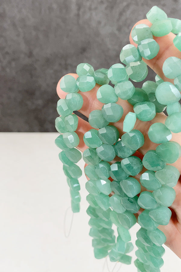 やさしいライトグリーンが心地いい、厚みのあるマロンカットのグリーンアベンチュリン。