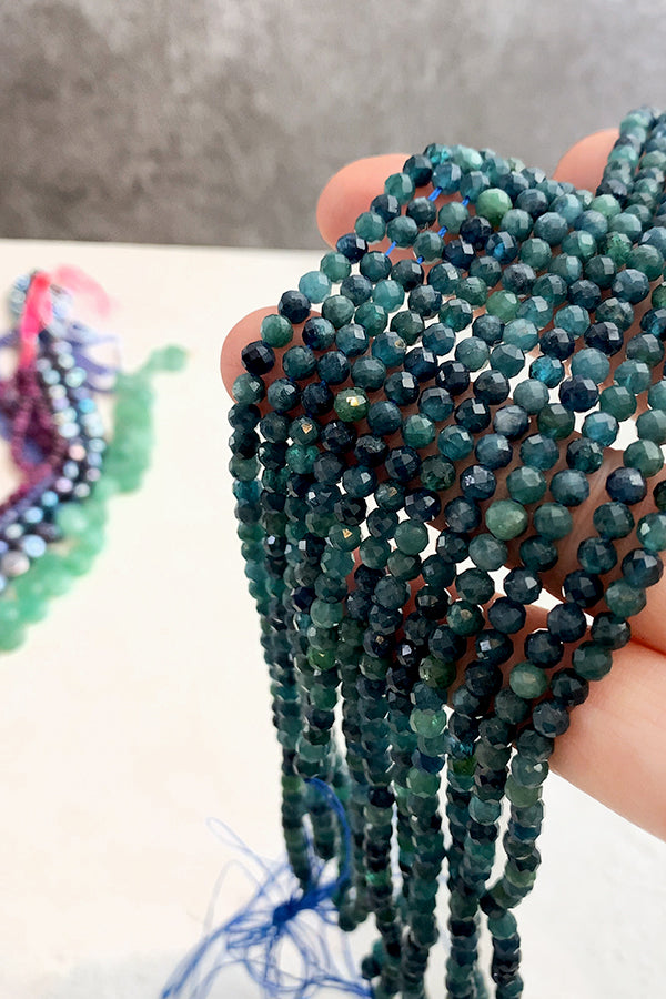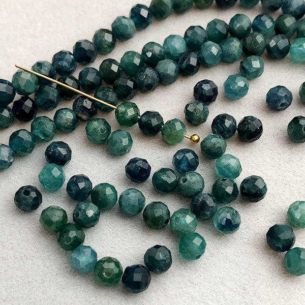 【天然石】 トルマリン (ラウンドカット) ブルー グリーン 大きさ 約4mm 穴径 約0.5~0.6mm